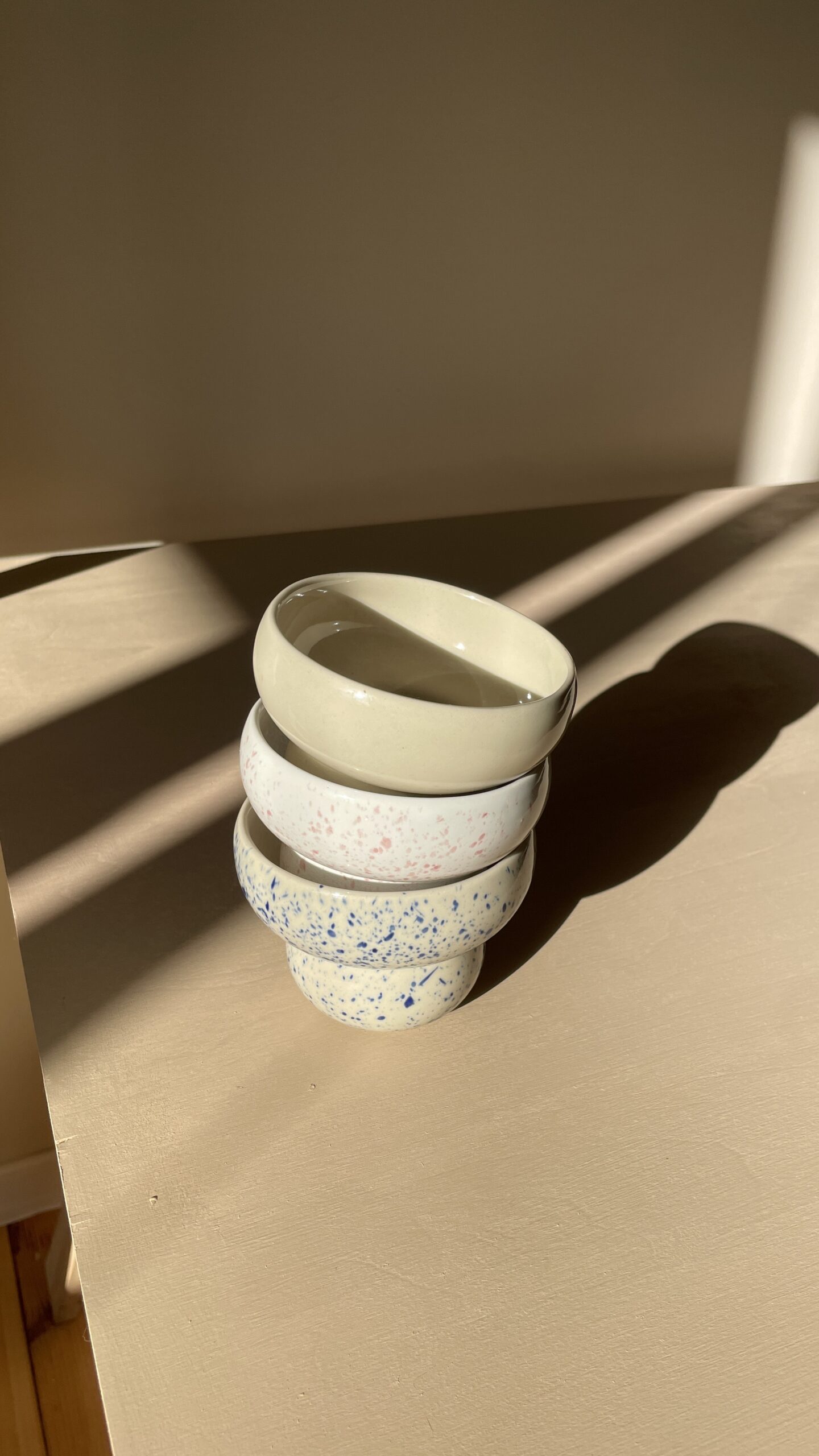 Seria ceramicznych czarek trójkolorowych i w pełnych żywych barwach.