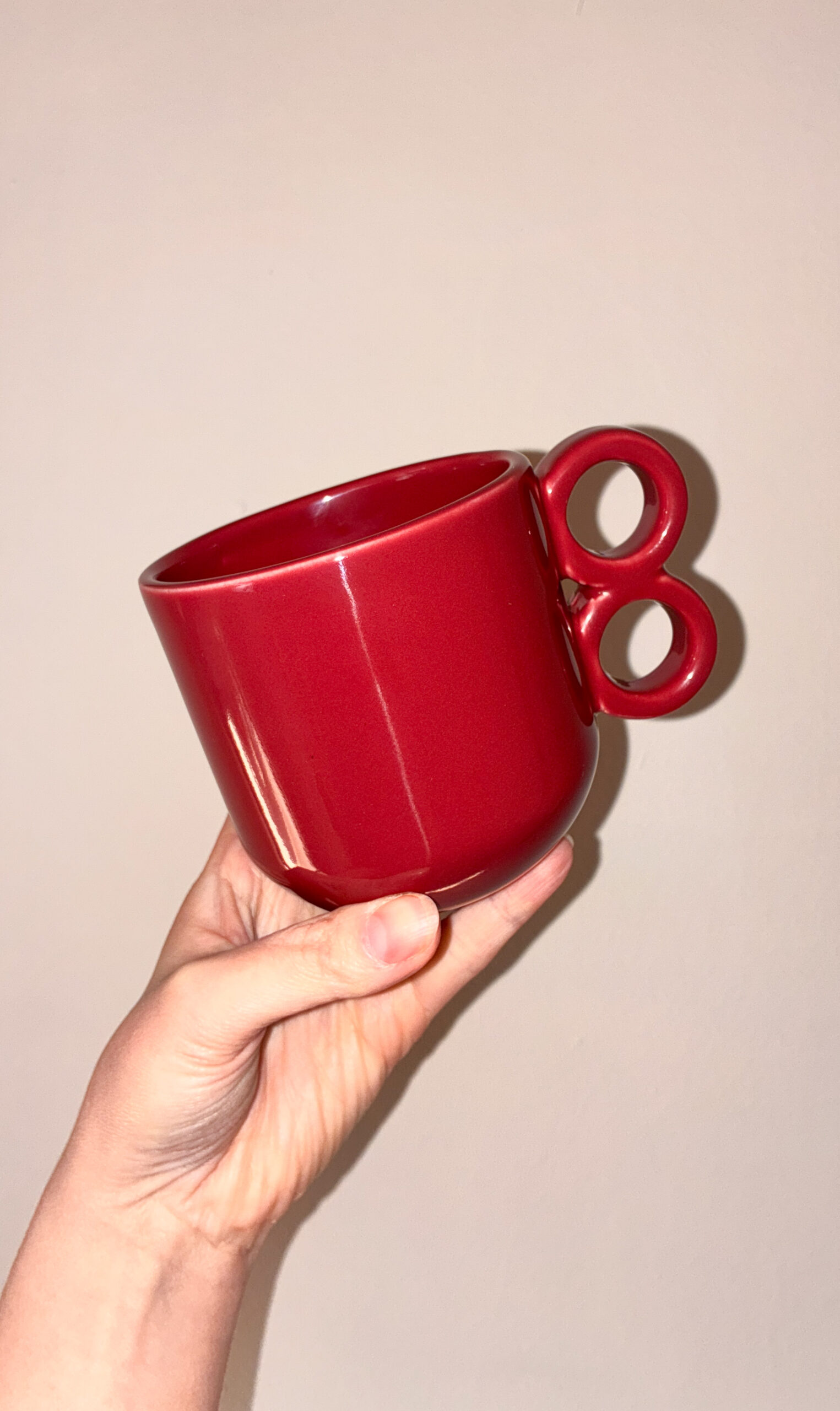 Kubek z podwójnym uchem o pojemności 0,33 ml. na kawę lub herbatę.
