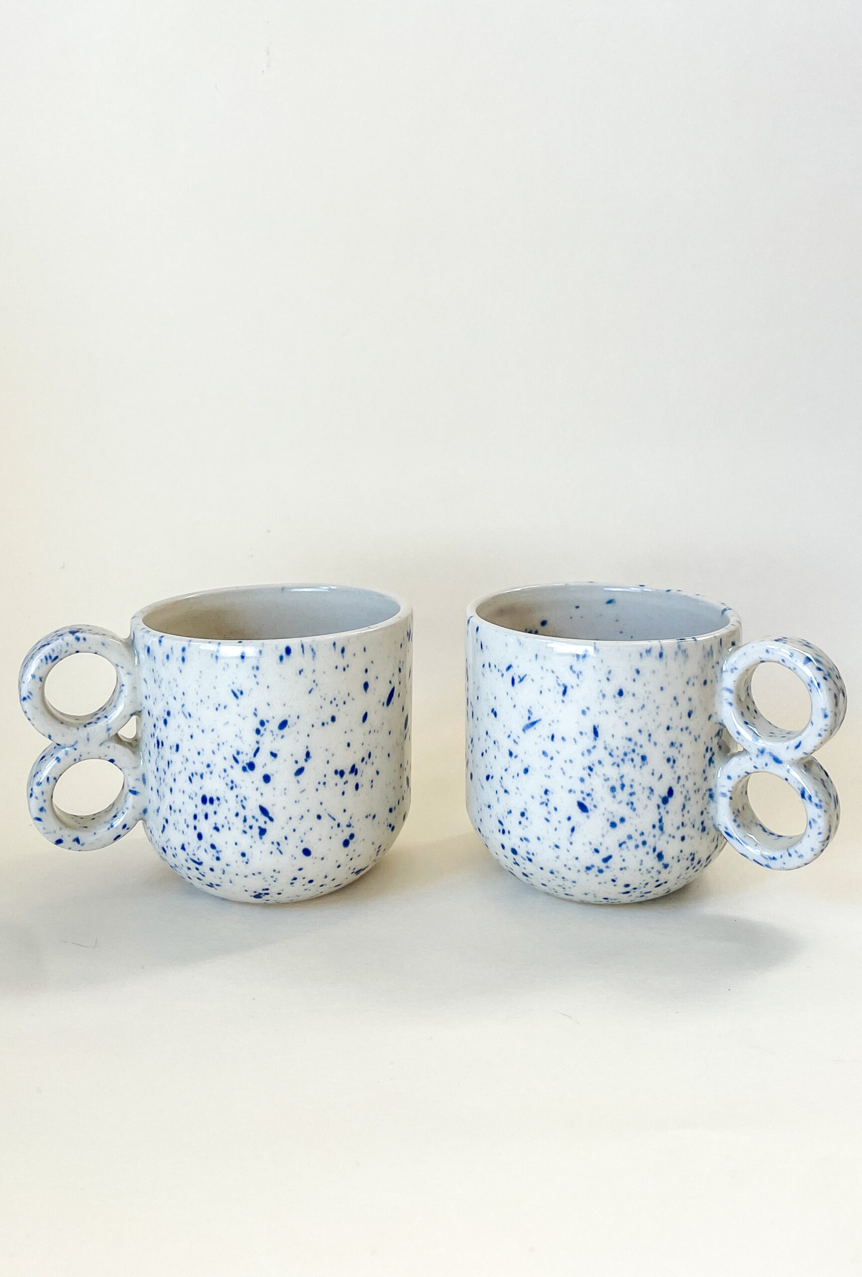 Kubek z podwójnym uchem o pojemności 0,33 ml. na kawę lub herbatę.