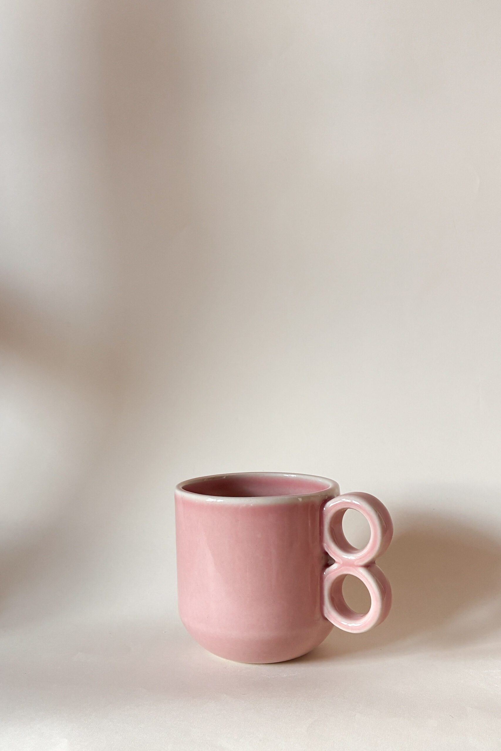 Kubek z podwójnym uchem o pojemności 0,33 ml. na kawę lub herbatę.